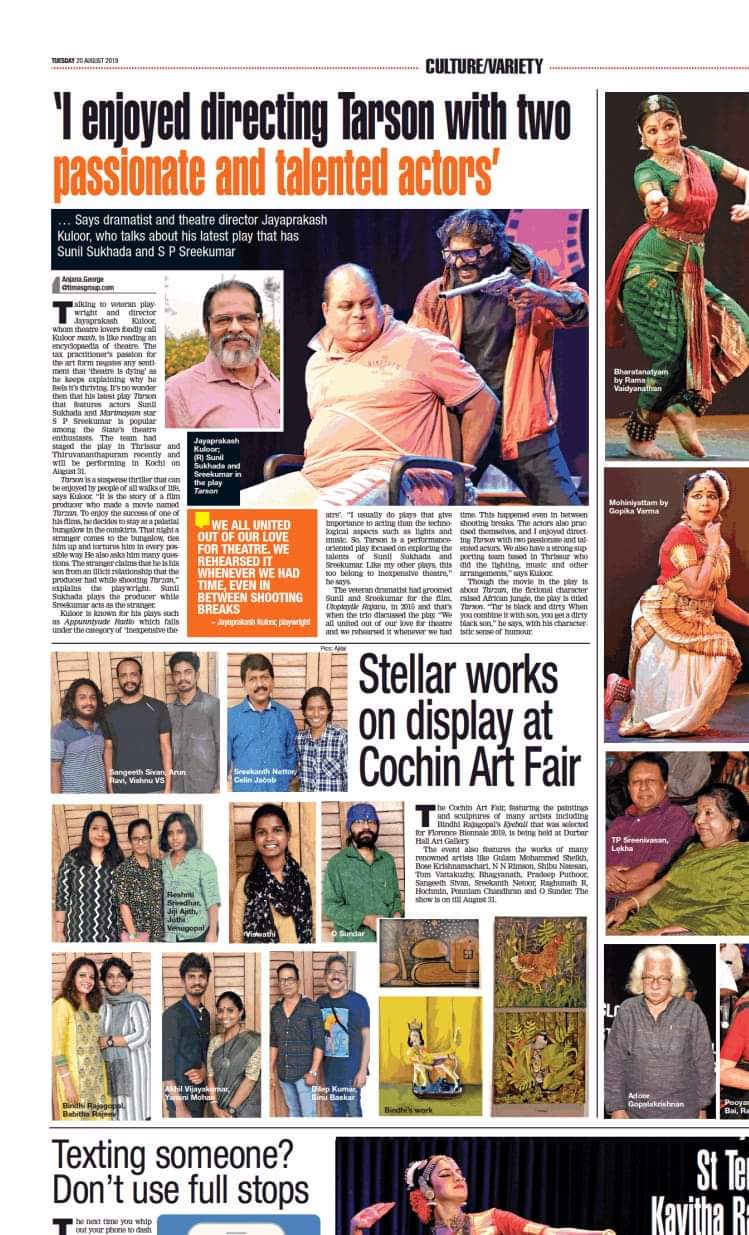 Glimpses of the art show titled “Cochin Art Fair ” 2019 at Durbar Hall Gallery, Kochi. Mesmerising mixture of both seniors and young artists is the highlight of this Exhibition. Seniors include Gulam Muhammed Sheikh, Bose Krishnamachari , Shibu Natesan, Reghunadhan K, NN Rimzon, Tom Vattakuzhy,Sujith SN, PradeepPuthoor, Bhagyanath, Babu Xavier, Hochimin PH, O Sunder and other known artists such as Bindi Rajagopal, Gopikrishna, Srikanth Nettoor, KS Dilipkumar and many more in the list. The show is conceptualized by O Sunder ,who is the mastermind behind this beautiful show.